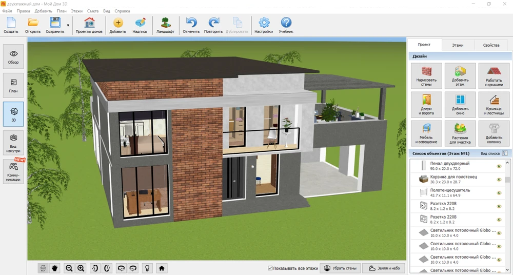 Это удобный инструмент для проектирования частного дома, который позволяет создать детальную 3D-модель здания с привязкой всех инженерных систем, включая электрику, отопление, водоснабжение и канализацию.