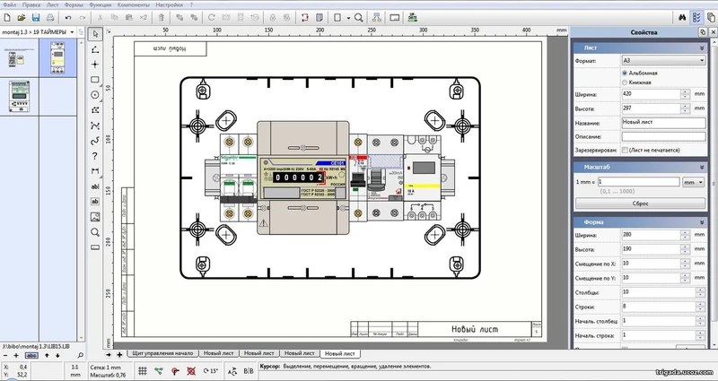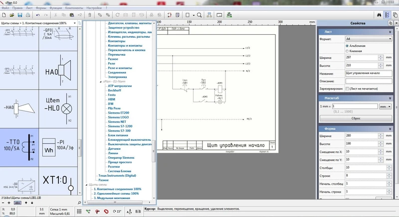 Софт начального уровня для рисования электрических схем, популярный среди студентов и любителей. Поддерживает работу с несколькими языками даже внутри одного документа. Чертежи, созданные в программе, экспортируются в файлы форматов DXF, PDF, JPG, PNG, BMP, SVG.